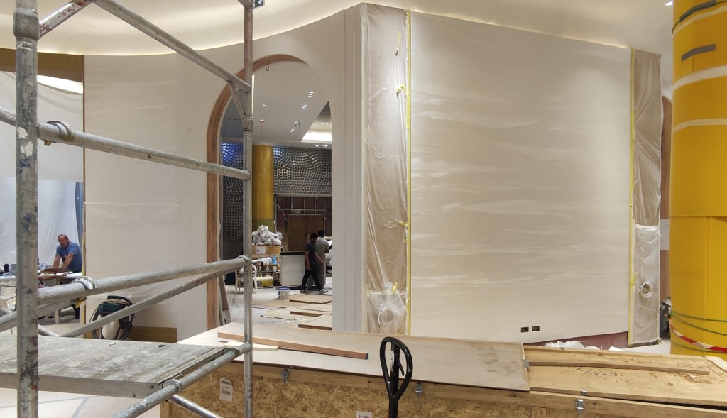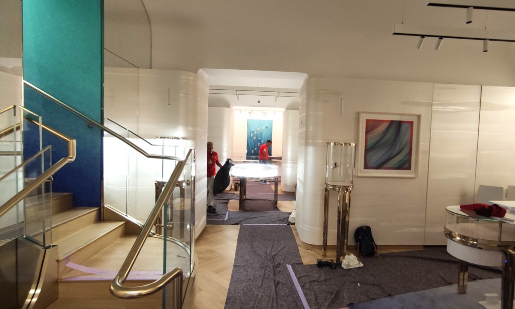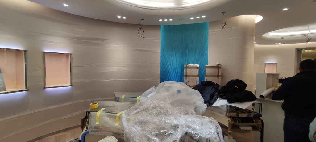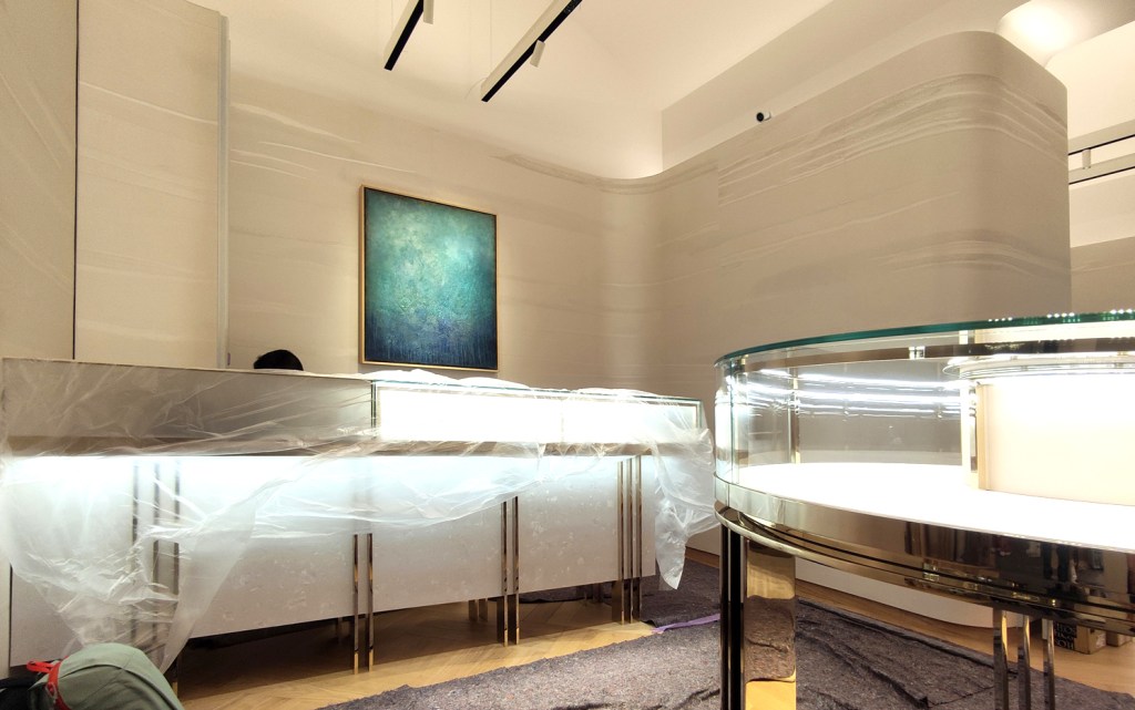 Intervenant en free-lance au sains de l’entreprise, je travaille essentiellement sur la décoration murale des magasins du groupe Tiffany&Co, joaillerie de lux.